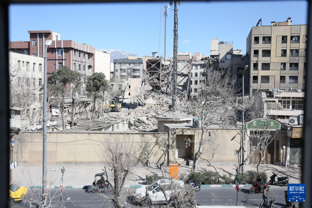這是3月3日在伊朗德黑蘭拍攝的一處在襲擊中受損的建筑。