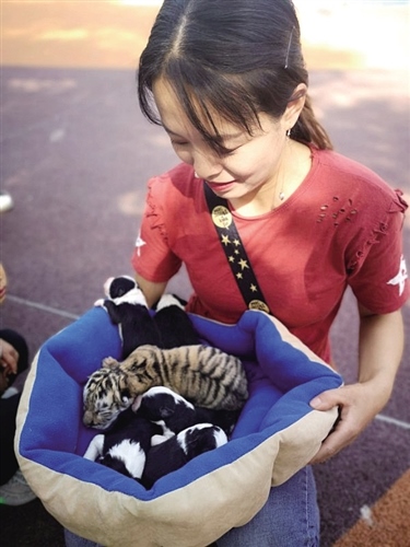 據(jù)發(fā)布信息的包頭市勞動公園動物園園長曾勇介紹,6月2日,動物園里出生了一只雌性小虎崽,小虎崽出生后,虎媽媽因沒有帶娃經(jīng)驗,出現(xiàn)脾氣暴躁的情況,為防止小虎崽被傷害,只能先給它喂食羊奶。動物園在高興之余借鑒了其他地區(qū)的應急措施,由于狗和貓科動物之間的奶源是互通的,可以實現(xiàn)相互喂養(yǎng),便發(fā)布消息,希望通過狗媽媽替代哺乳的方式幫助東北虎幼崽成長。為保證虎寶寶健康,動物園決定為它尋找一只生產(chǎn)20天以內(nèi)的狗媽媽,喂養(yǎng)時間為20天左右,喂養(yǎng)期間,動物園為它們準備單間,小老虎和狗兄弟同吃同住。