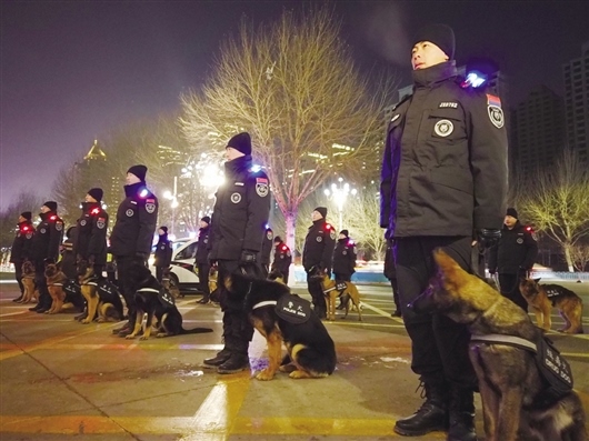 2020年12月31日19時(shí)許,首批警犬馴導(dǎo)員攜帶20條警犬亮相街頭,在轄區(qū)人流密集場(chǎng)所、購(gòu)物商圈、公交站點(diǎn)及重點(diǎn)單位首次執(zhí)行巡邏任務(wù),開啟警犬巡邏管控警務(wù)新模式。