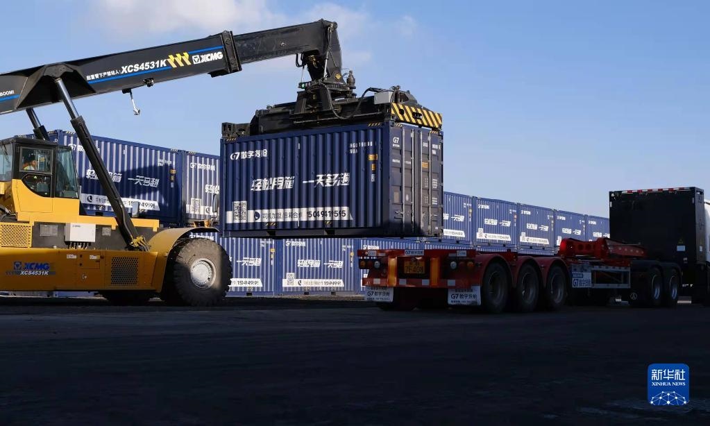 這是內蒙古自治區(qū)包頭市九原區(qū)新近建成的“數(shù)字陸港”的作業(yè)場景。