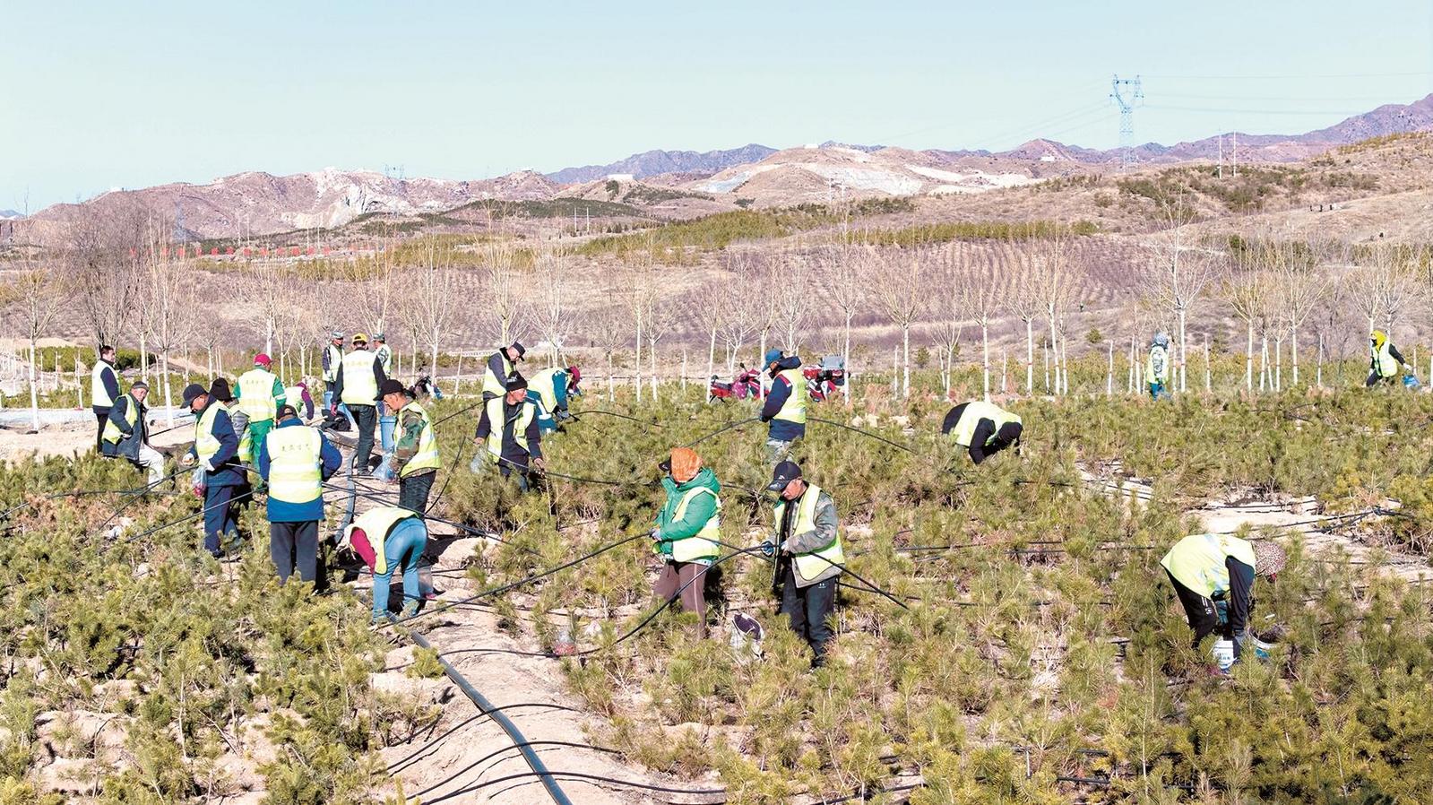 在大青山南坡笸籮鋪項目區(qū),當(dāng)?shù)夭扇 耙M(jìn)社會資本參與生態(tài)建設(shè)”模式開展大青山南坡提質(zhì)增效工作,在保持現(xiàn)有綠化面積的基礎(chǔ)上,通過補(bǔ)植、撫育等提升生態(tài)系統(tǒng)的質(zhì)量和功能;在東河區(qū)三合園溝,修枝除草、補(bǔ)植補(bǔ)造等為青山區(qū)防沙治沙攻堅戰(zhàn)大青山南坡提質(zhì)增效項目充“植”;在固陽縣紅崖灣村委羊場卜子村,以退化林修復(fù)為主體的平茬復(fù)壯工作有效緩解禁牧休牧和草畜平衡帶來的飼草料緊缺壓力;在金山鎮(zhèn)固陽林場2林班項目區(qū),“以工代賑”實現(xiàn)經(jīng)濟(jì)社會發(fā)展與生態(tài)文明建設(shè)兼顧兼得, 進(jìn)一步激發(fā)全民植樹造林熱情……