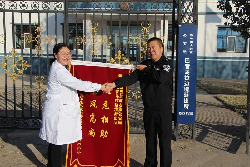 近日,白音烏拉衛(wèi)生院李院長到巴音烏拉邊境派出所,將一面印有“風危相助、警風高尚”的錦旗送到民警手中,感謝派出所民警長期以來對駐地衛(wèi)生院和居民的幫助和關愛。