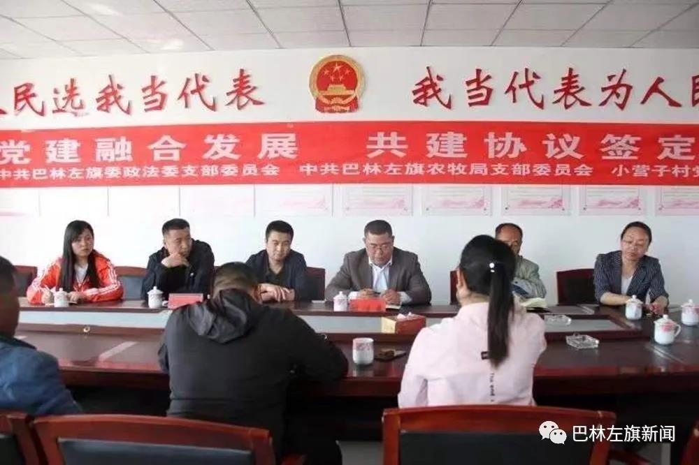 ↑花加拉嘎鄉(xiāng)小營(yíng)子村黨支部與幫扶單位簽訂土地“托管”共建協(xié)議(攝影:段文倩)