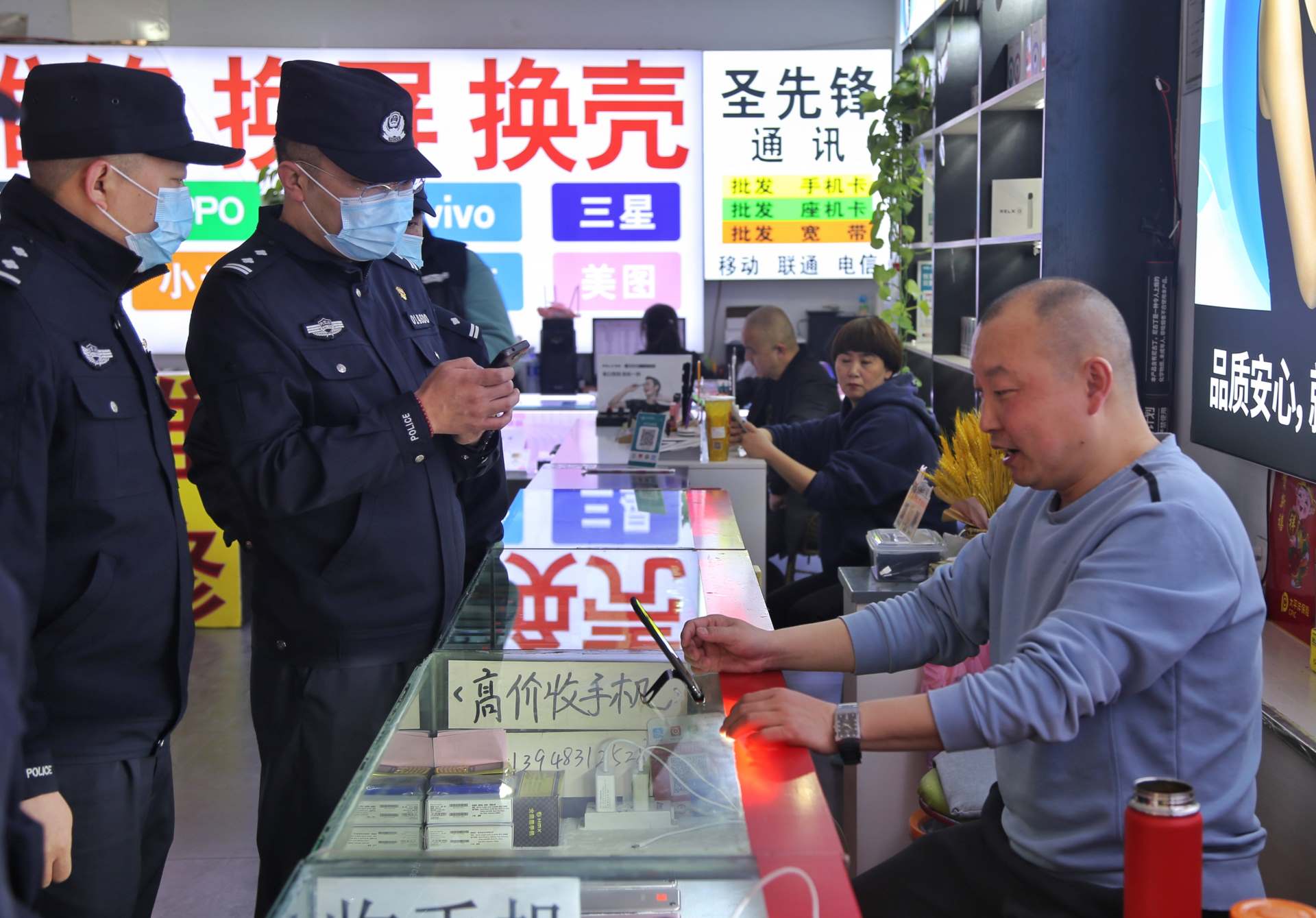按照預(yù)定方案,行動(dòng)分為四組,兩組對(duì)永和二手手機(jī)市場(chǎng)和眾興二手手機(jī)市場(chǎng)進(jìn)行突擊清查,另兩組以便衣形式對(duì)周圍流動(dòng)收售手機(jī)人員進(jìn)行排查。行動(dòng)期間,民警對(duì)二手手機(jī)銷售店鋪內(nèi)的手機(jī)和工作人員情況進(jìn)行清查,逐一對(duì)照登記臺(tái)賬,嚴(yán)格檢查落實(shí)情況,同時(shí)向經(jīng)營(yíng)業(yè)主及市民進(jìn)行法制宣傳教育。此次行動(dòng)共排查登記二手手機(jī)850部,買賣二手手機(jī)人員50余人,檢查二手手機(jī)商戶22家,暫扣未履行登記手機(jī)30余部。