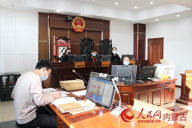 回民區(qū)人民法院商事金融審判團(tuán)隊(duì)進(jìn)行現(xiàn)場(chǎng)庭審。人民網(wǎng) 張聿修攝