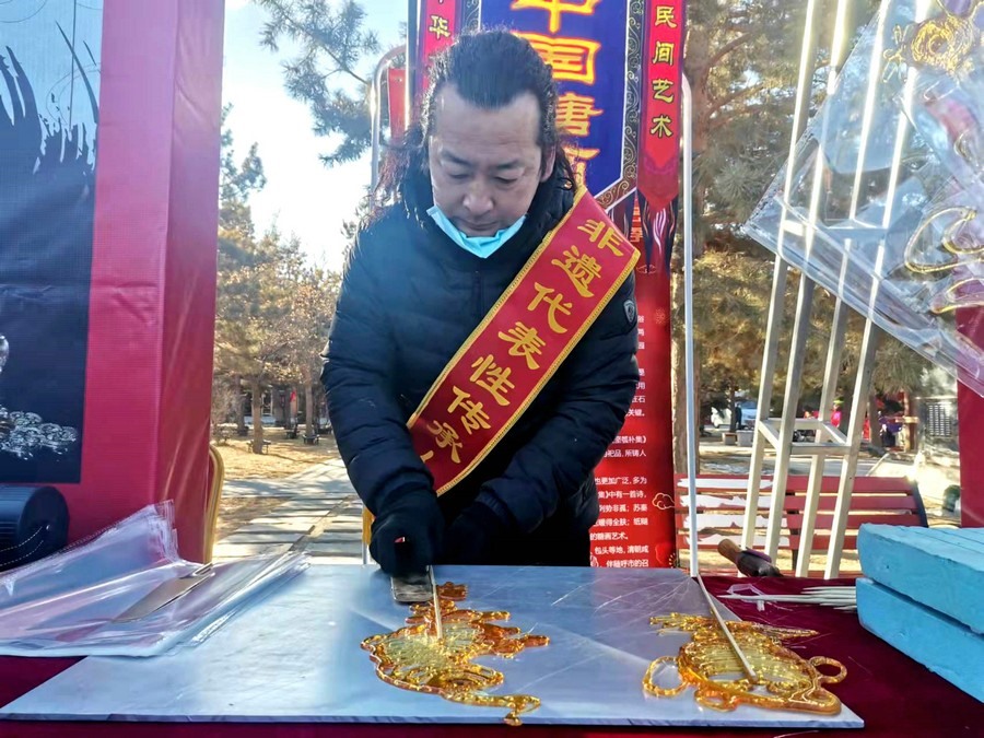活動(dòng)現(xiàn)場(chǎng),非遺剪紙傳承人董存娥專門剪出“奧運(yùn)題材剪紙”和“北京冬奧會(huì)開幕式中國(guó)代表團(tuán)旗手、呼和浩特19歲姑娘趙丹”手舉國(guó)旗的剪紙作品。呼和浩特的非遺項(xiàng)目布藝、剪紙、蒙古族皮藝皮畫皮雕、糖畫、蛋雕、蒙鑲工藝、二人臺(tái)、爬山調(diào)等近20項(xiàng)進(jìn)行了現(xiàn)場(chǎng)展示展覽傳習(xí)互動(dòng),受到群眾歡迎。