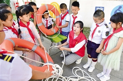 7月4日,呼和浩特市玉泉區(qū)五塔寺東街小學(xué)學(xué)生在暑期安全教育活動中學(xué)習(xí)救生圈使用方法。暑期來臨,學(xué)生溺水事件進(jìn)入高發(fā)期,7月2日,自治區(qū)黨委教育工委、教育廳發(fā)布了致全區(qū)學(xué)生家長的一封信,讓家長們充分認(rèn)識溺水事故的危害性,做好預(yù)防溺水的家庭教育,堅(jiān)決杜絕溺水等安全事故的發(fā)生。 (記者 王磊 )