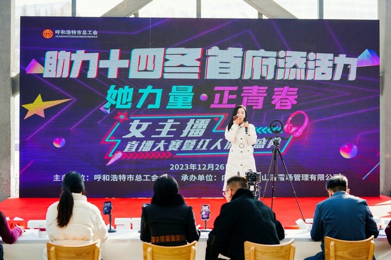 在“十四冬”即將來(lái)臨之際,呼和浩特市總工會(huì)以“她力量,正青春”為主題,聯(lián)合馬鬃山滑雪場(chǎng),舉辦了此次女主播直播大賽活動(dòng)。