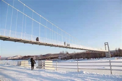 新建的“守望相助橋”橫跨根河兩岸,連接市區(qū)和蒼狼山原生態(tài)景區(qū),是一處集自然景觀和人文景觀于一體的新景點(diǎn)。橋面距離封凍的冰河十幾米高,造型優(yōu)美、張力十足。橋梁只供行人通過,站在橋上看過去,腳下是清澈透明的冰河,遠(yuǎn)處是原始森林,獨(dú)特的美景盡收眼底。