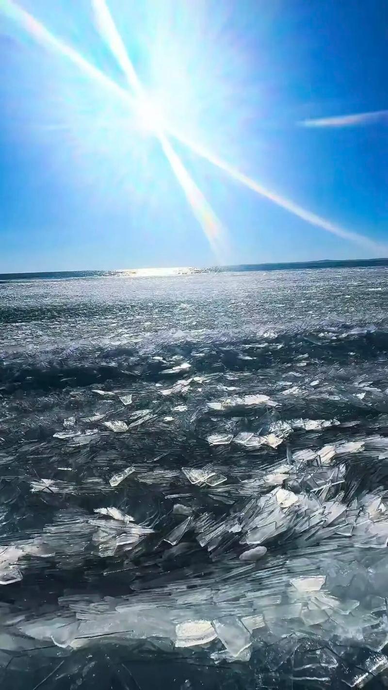 在呼倫湖西岸觀景臺,湖岸線已被層層疊疊的冰排環(huán)繞,這些不規(guī)則的冰體有的如臥虎盤踞,有的似玉柱擎天,最高可達(dá)三四米,宛如一道天然冰障。正午陽光灑落,冰層折射出晶瑩的光澤,偶有寒風(fēng)掠過,冰排碰撞發(fā)出沉悶的聲響,在空曠的湖畔回蕩。“這些冰塊都是風(fēng)浪推著往岸邊堆的,每天形狀都不一樣?!背D犟v守保護(hù)區(qū)的監(jiān)測員指著湖面介紹,封凍初期的風(fēng)浪是塑造冰排的關(guān)鍵,無風(fēng)浪時,封凍的湖面光滑如鏡,而有風(fēng)天氣則會讓冰層碎裂堆疊,形成獨(dú)特的冰排景觀。