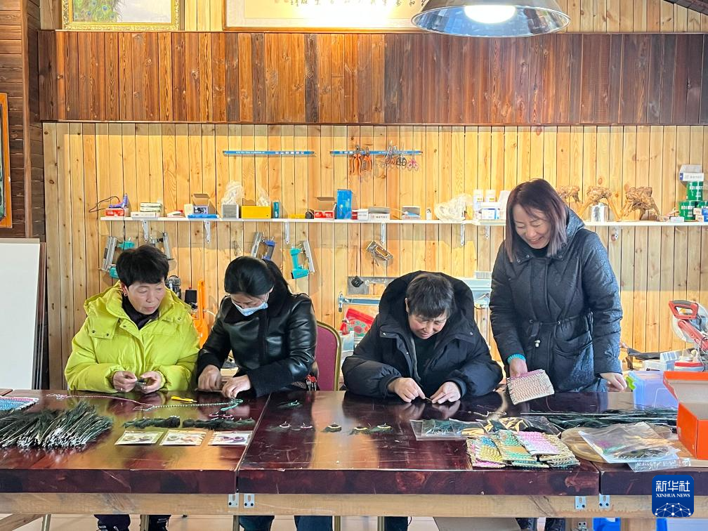 圖為蒙雀養(yǎng)殖專業(yè)合作社社員在制作羽毛工藝品。新華社發(fā)(王天琪 攝)