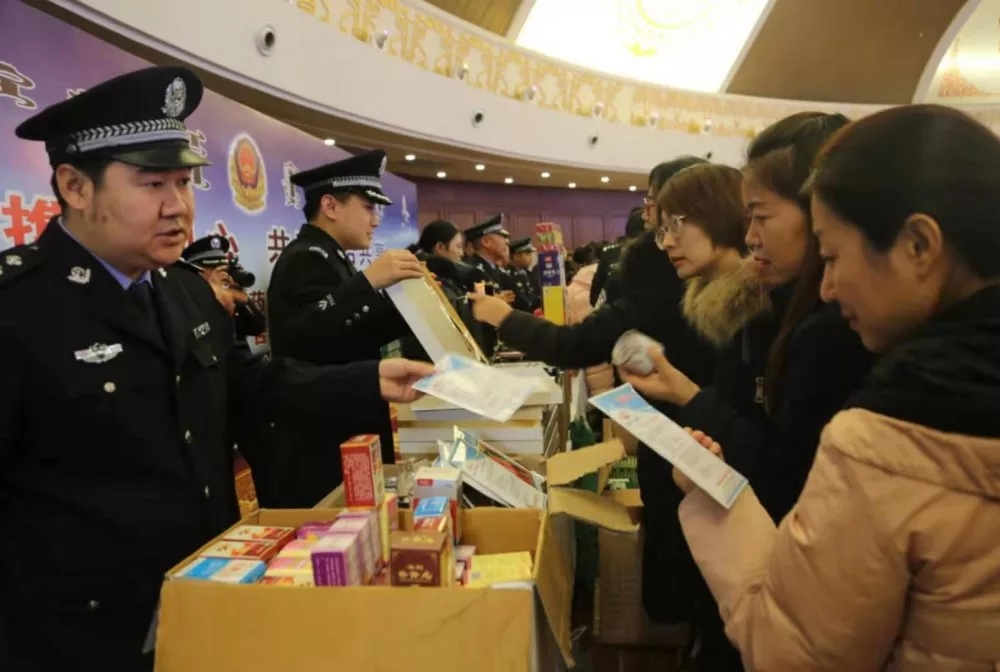 在活動(dòng)現(xiàn)場(chǎng),擺放著各地公安機(jī)關(guān)收繳的部分涉案有毒有害食品、假劣藥品、假冒美容針劑、假冒化妝品、假冒保健品等,引來群眾駐足觀看。“這里每一件‘精心包裝’的產(chǎn)品,都隱藏著‘步步驚心’的騙局和陷阱。”公安機(jī)關(guān)食藥環(huán)偵部門的民警結(jié)合展品種類,認(rèn)真向群眾講解如何識(shí)別有毒有害食品,如何辨別各類產(chǎn)品的真?zhèn)危绾畏乐垢黝惐=∑返奶摷傩麄?,怎樣維護(hù)自身的合法權(quán)益等問題。