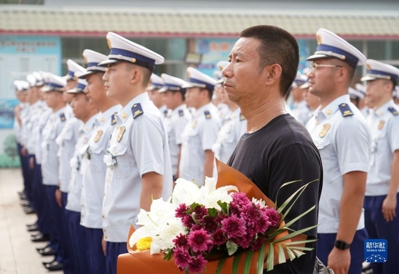 8月4日,在強(qiáng)降雨搶險(xiǎn)救災(zāi)中壯烈犧牲的馮振烈士遺體告別儀式在北京八寶山殯儀館舉行。