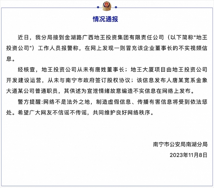 央視網(wǎng)消息:據(jù)平安豐潤微信公眾號消息,1月26日,唐山豐潤區(qū)公安局發(fā)布警情通報。1月23日,唐山玉田縣發(fā)生一起刑事案件,經(jīng)上級指定管轄,豐潤區(qū)公安局依法立案偵查。