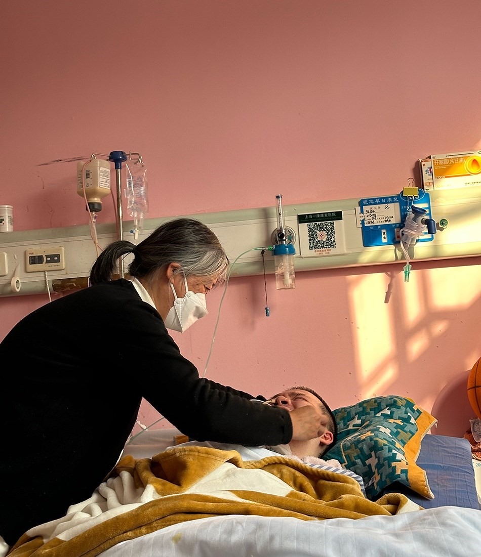 一月上旬的一個(gè)下午,鄭建英像過去一千多個(gè)日子一樣,坐在兒子床尾的椅子上,盯著他床頭監(jiān)視器的氧保。這幾年,她已經(jīng)形成條件反射,當(dāng)數(shù)值低于92時(shí),她會(huì)從椅子上彈起來幫他吸痰。