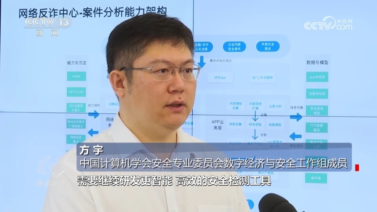 方宇:“下一步,針對涉詐APP的發(fā)現(xiàn),需要繼續(xù)研發(fā)更智能、高效的安全檢測工具,建立涉詐APP的黑名單數(shù)據(jù)庫。另外,結合一些新型、智能化的技術手段,通過對網(wǎng)絡流量分析,及時發(fā)現(xiàn)詐騙流量,并通過公安、網(wǎng)信、金融、市場監(jiān)管等部門進一步加強聯(lián)動、信息及時共享、及時進行阻斷,多措并舉,共同努力,形成合力,打擊涉詐APP?!?/p>