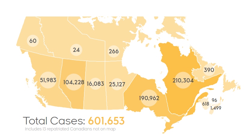 據(jù)加拿大電視臺(CTV)報道,截止到加拿大東部時間1月3日15:30,根據(jù)加拿大各省公布的新冠疫情統(tǒng)計數(shù)據(jù),加拿大新冠確診病例已經(jīng)突破60萬例,達(dá)到601653例。