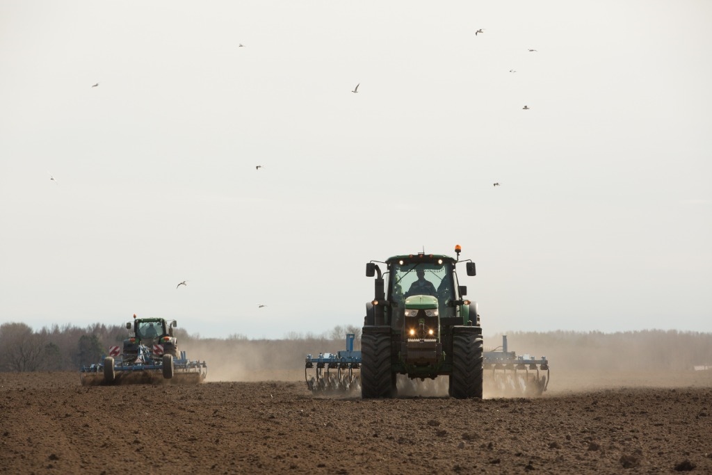 2021年4月15日,農(nóng)民在俄羅斯列寧格勒州一農(nóng)場內(nèi)播種春小麥。新華社發(fā)(莫京娜攝)