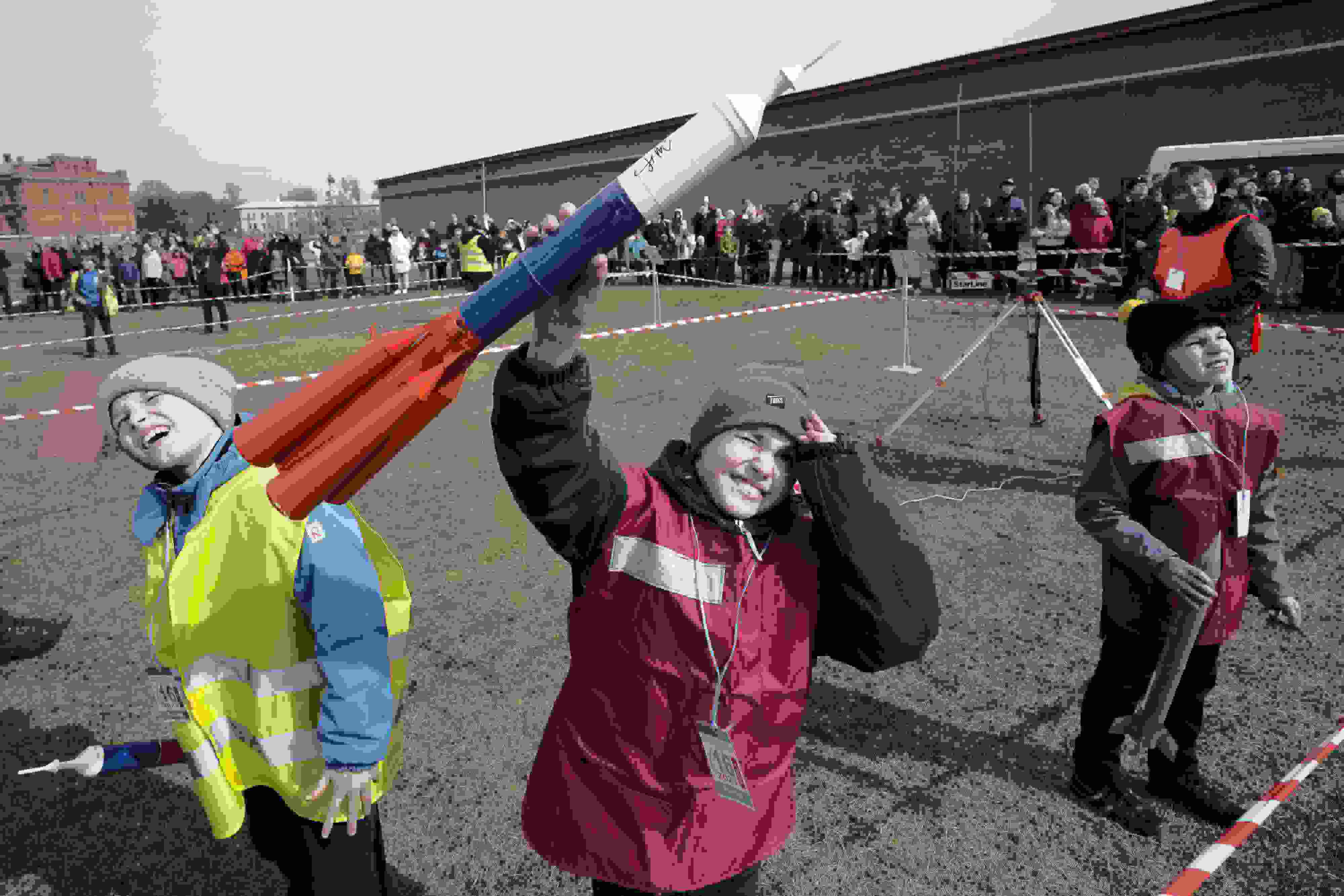 當(dāng)?shù)貢r(shí)間2023年4月16日,俄羅斯圣彼得堡,民眾發(fā)射火箭模型紀(jì)念人類首次太空飛行62周年。 視覺中國(guó)
