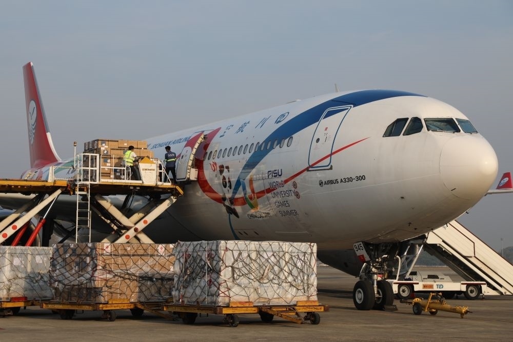 這是2023年1月19日在緬甸仰光國際機(jī)場拍攝的中國政府援助緬甸的新冠疫苗。新華社發(fā)(中國駐緬甸使館供圖)