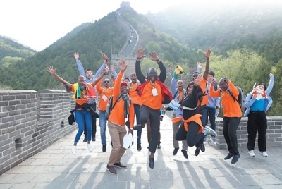 4月17日,非洲青年代表在北京居庸關(guān)長(zhǎng)城合影留念。中國(guó)宋慶齡基金會(huì)供圖