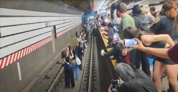 《紐約郵報》稱,視頻顯示,當地時間6日晚6時左右,在紐約市一地鐵站,多名抗議示威者跳入地鐵軌道,將迎面駛來的地鐵逼停??棺h者高呼“沒有正義,沒有和平”,而在背景聲音中,可以聽到警察試圖呼吁維持秩序。這群示威者呼吁為尼利討回公道。這一危險舉動導致該地鐵站暫時停運。