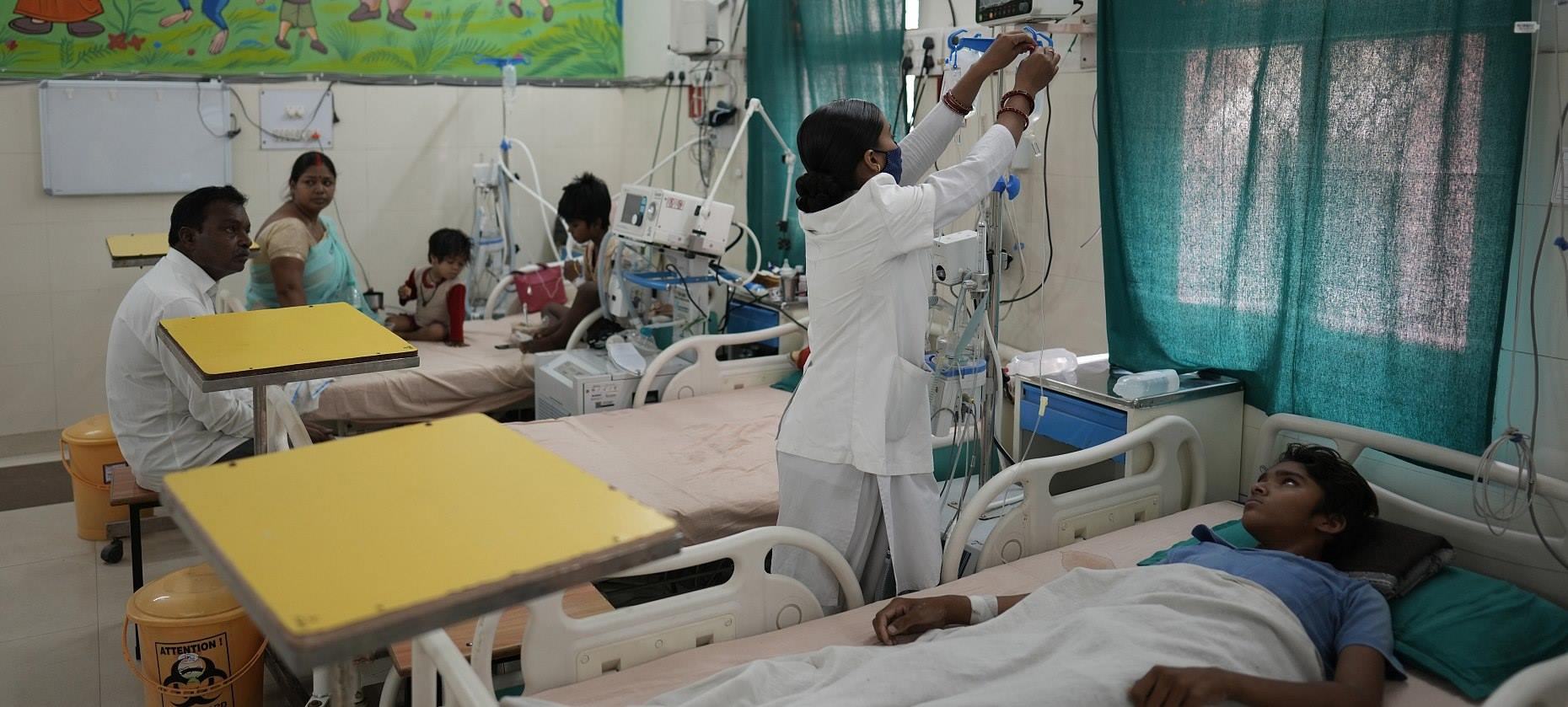 當?shù)貢r間2022年4月24日,印度普拉亞格拉杰,高溫持續(xù),很多孩子因中暑在醫(yī)院治療。