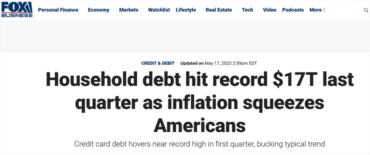 “通脹榨干了美國人,”對此,美國??怂剐侣劸W報道稱,“自2023年伊始,美國人的債臺更加高筑,有越來越多的美國家庭拖欠貸款?!?/p>