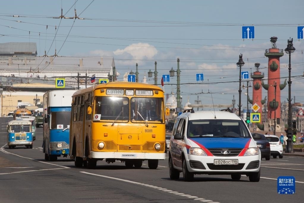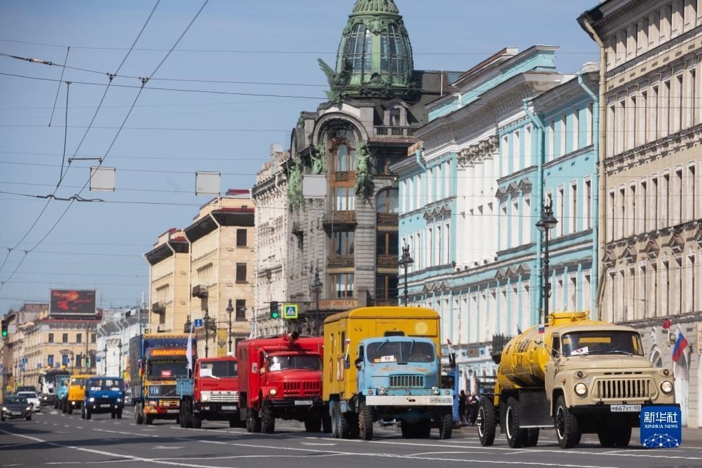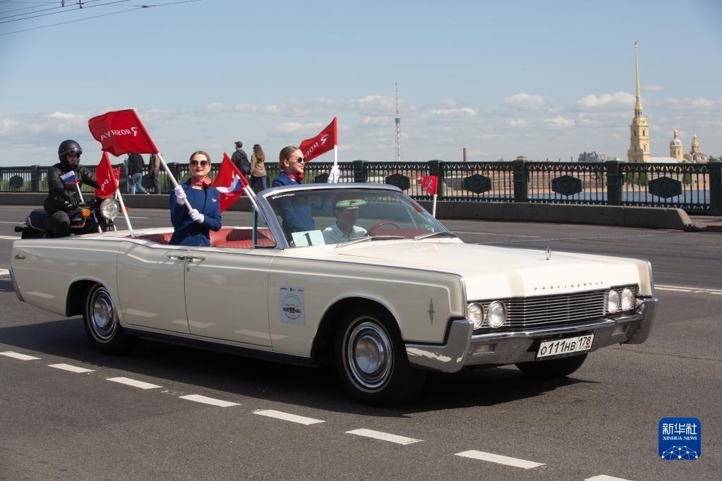 5月20日,各式老爺車在俄羅斯圣彼得堡街頭巡游。   新華社發(fā)(莫京娜攝)