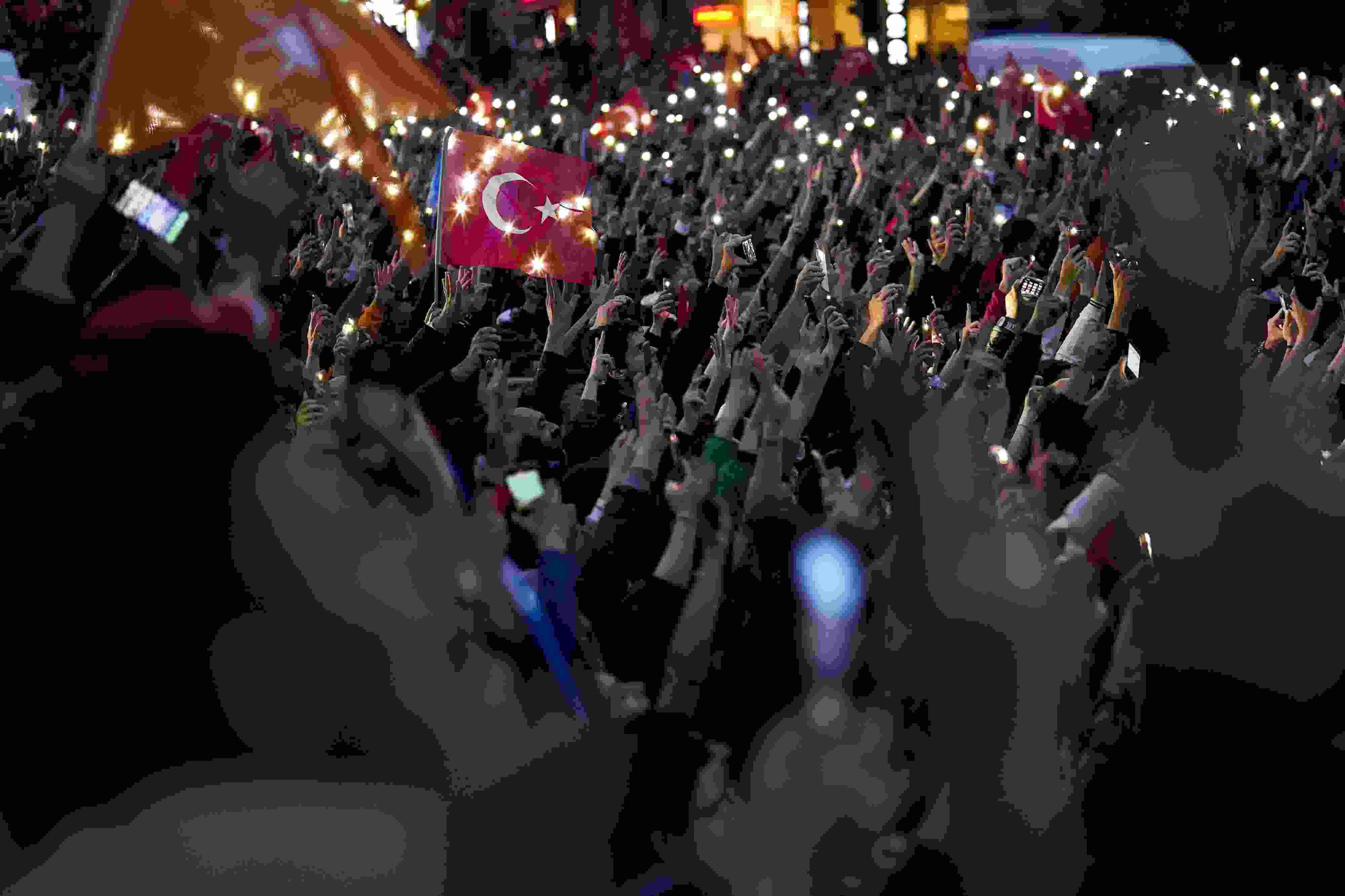 當(dāng)?shù)貢r(shí)間2023年5月28日,土耳其伊斯坦布爾,埃爾多安的支持者慶祝其再次當(dāng)選土耳其總統(tǒng)。 視覺中國