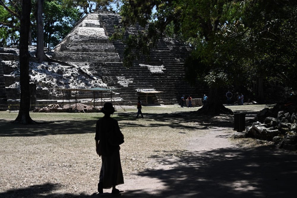 4月1日,游客在洪都拉斯科潘瑪雅古城遺址內(nèi)參觀。新華社記者 辛悅衛(wèi) 攝