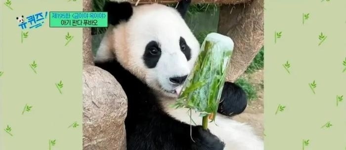 “福寶”吃“竹子冰淇淋”。(圖片來(lái)源:韓國(guó)tvN電視臺(tái))