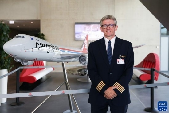 8月1日,在盧森堡貨航總部,盧森堡貨航飛行運營執(zhí)行副總裁克洛德·澤倫站在貨機模型前。新華社記者 鄭煥松 攝