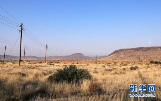 這是8月10日在南非北開普省德阿鎮(zhèn)拍攝的龍?jiān)茨戏枪镜掳L(fēng)電項(xiàng)目風(fēng)機(jī)和輸電線路。 新華社記者 董江輝 攝