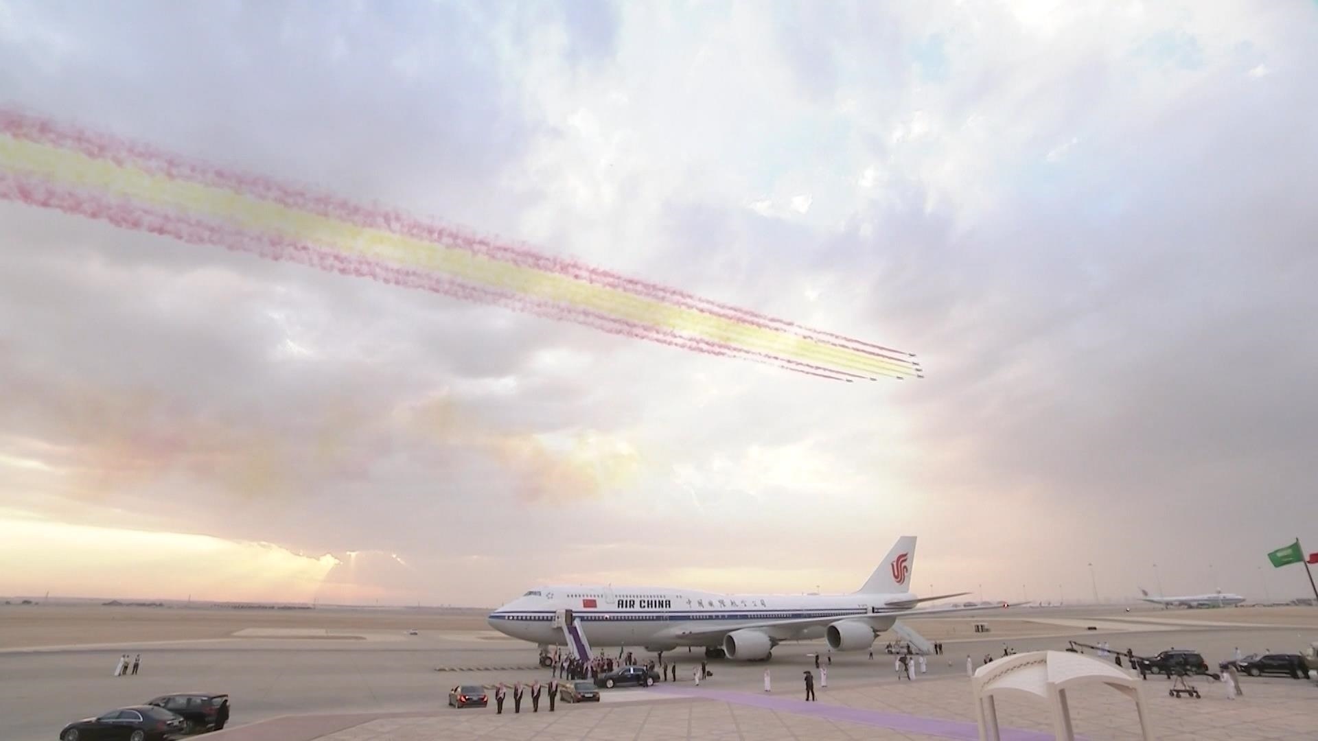 過去7年,在兩國元首共同推動下,中沙務實合作迅猛發(fā)展。2022年12月,時隔6年,習近平主席對沙特再次進行國事訪問。當習近平主席乘坐的專機進入沙特領空,沙特空軍4架戰(zhàn)機升空護航,禮賓護衛(wèi)機在空中拉出象征中國國旗的彩帶,沙特用最高禮遇迎接來自中國最尊貴的客人。