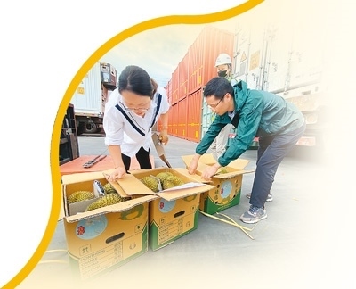 “針對(duì)水果等生鮮農(nóng)產(chǎn)品特點(diǎn),我們采取7×24小時(shí)預(yù)約通關(guān),設(shè)置農(nóng)食產(chǎn)品專用窗口,優(yōu)先辦理鮮活易腐農(nóng)產(chǎn)品接單、放行業(yè)務(wù),并采取即到即檢即放模式,確保進(jìn)口水果通關(guān)零延遲?!臂屡D海關(guān)關(guān)長(zhǎng)韓斌說(shuō)。
