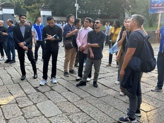 10月24日,2023“一帶一路”媒體合作論壇聯(lián)合采訪團的外國記者參訪岳麓書院。(本報記者 劉書文攝)