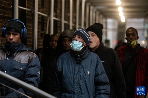 12月24日,在美國(guó)紐約,民眾在“紐約公共食品儲(chǔ)藏室”排隊(duì)領(lǐng)取免費(fèi)食品。新華社發(fā)(郭克攝)