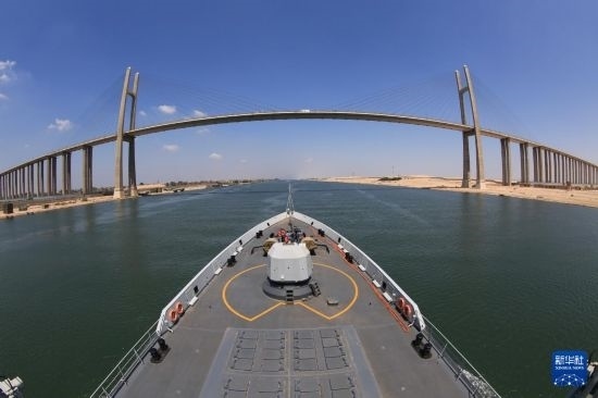 中國海軍第26批護(hù)航編隊航行通過蘇伊士運河(2017年9月2日攝)。新華社發(fā)(林健攝)