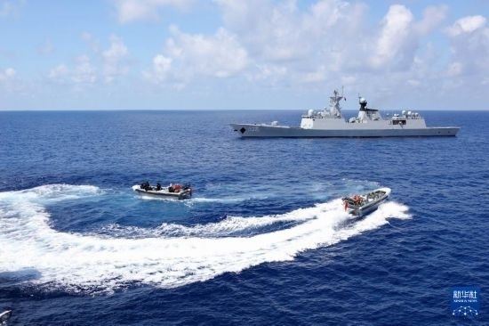 中國海軍第45批護(hù)航編隊烏魯木齊艦、東平湖艦為中國漁船護(hù)航(2023年10月20日攝)。新華社發(fā)(王遠(yuǎn)方攝)