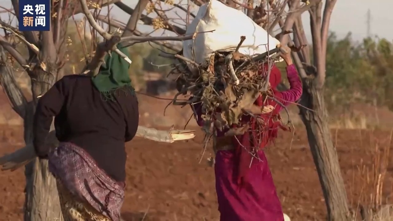 在村口,我們看到扛著柴火的農村婦女,她們撿樹枝給家里取暖。村外,我們發(fā)現一些地區(qū)的樹木都快被砍光了。戰(zhàn)爭和制裁帶來的人道主義危機已經讓鄉(xiāng)村空殼化。而戰(zhàn)前,這還是一片被譽為“中東糧倉”的小麥出口地。