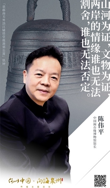 1月28日晚,由中央網(wǎng)信辦、國家文物局、人民日報(bào)社、福建省委網(wǎng)信委指導(dǎo),中央網(wǎng)信辦網(wǎng)絡(luò)傳播局、國家文物局相關(guān)司局、福建省委網(wǎng)信辦、福建省文物局以及人民網(wǎng)等部門聯(lián)合主辦的“何以中國·向海泉州”網(wǎng)絡(luò)主題活動在泉州舉行?;顒蝇F(xiàn)場,作為講述嘉賓之一,中國閩臺緣博物館館長陳偉平分享了自己見證的閩臺緣、兩岸情。