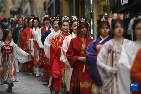 馬耳他民眾和當(dāng)?shù)赜慰?7日在地中海古城瓦萊塔的街道上欣賞到一場美妙的“漢服秀”。20多名中外女性漢服愛好者身著漢服,或手持團(tuán)扇,或提著宮燈,在地中海的微風(fēng)中款款而行。