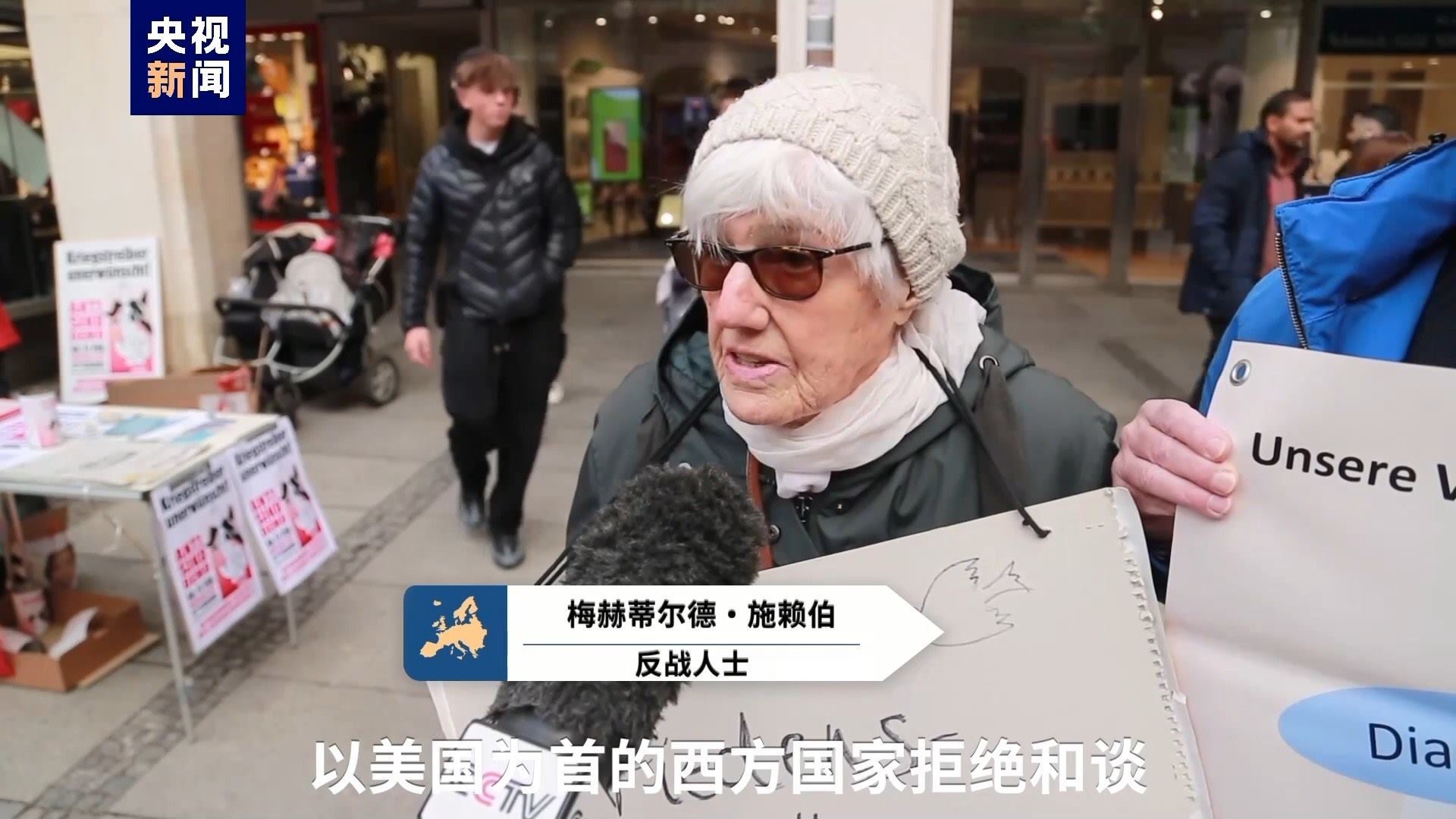 反戰(zhàn)人士 梅赫蒂爾德·施賴伯:以美國為首的西方國家拒絕和談。德國國防部長說,我們必須做好戰(zhàn)爭準備,運送武器并且提高武器生產能力。這非常可怕。