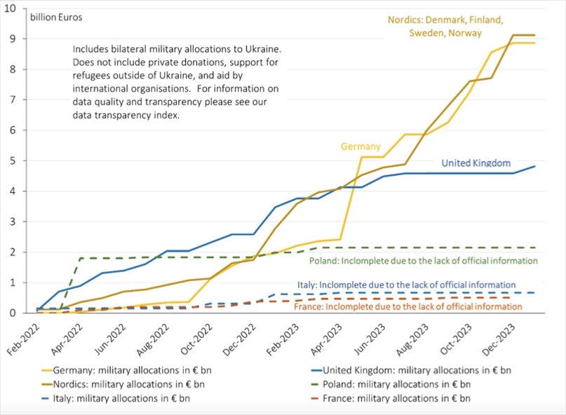 △歐洲國家對烏軍援圖表(圖片來源:基爾世界經濟研究所)