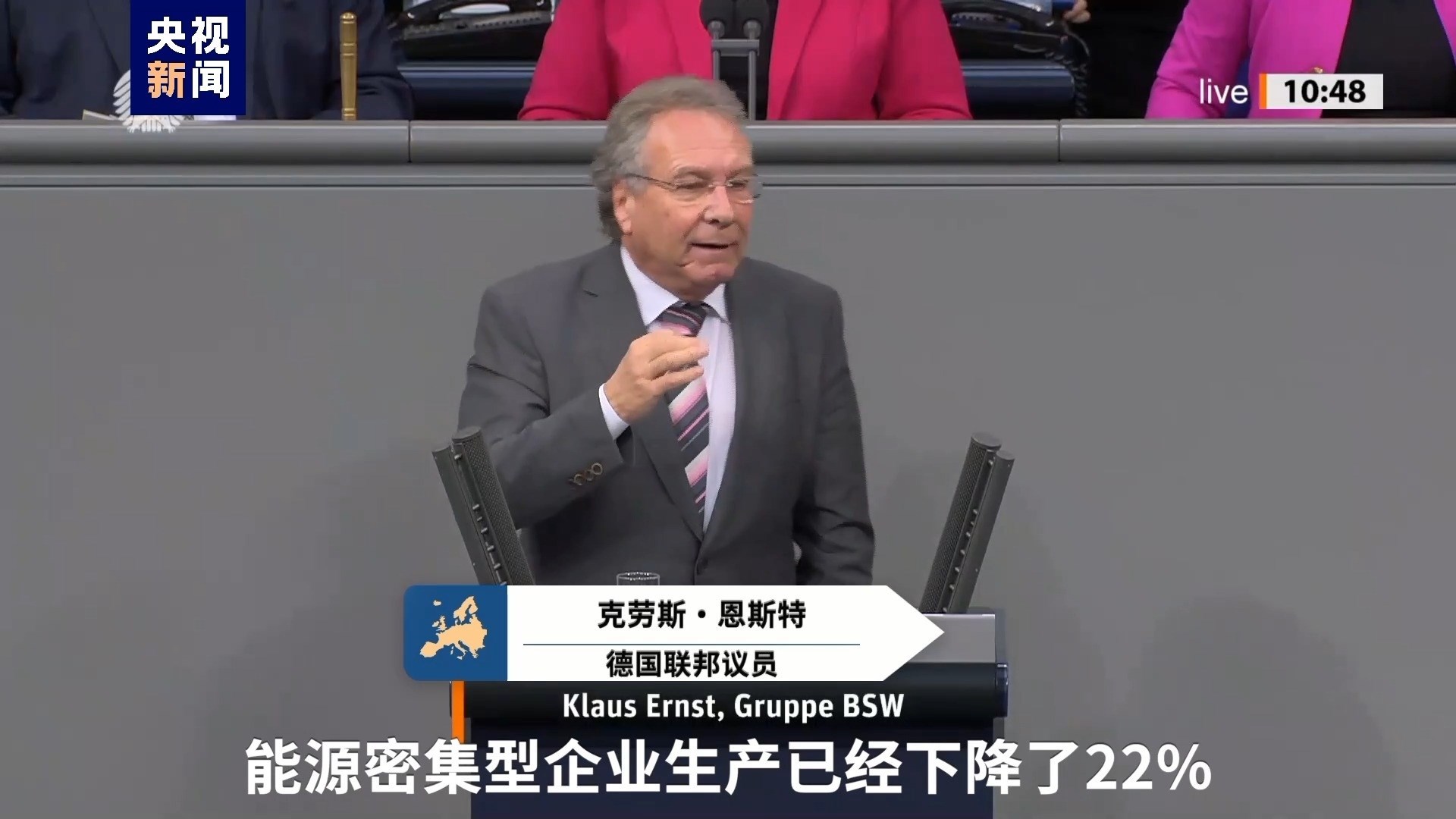 德國聯(lián)邦議員 克勞斯·恩斯特:我們確切地知道,能源密集型企業(yè)生產已經下降了22%。這個下降并不是憑空捏造的。我們目前對于能源密集型企業(yè)的能源定價已經達到了它們無法承擔、不愿支付的水平。因此,它們自然會嘗試將生產轉移到其他國家,例如美國。