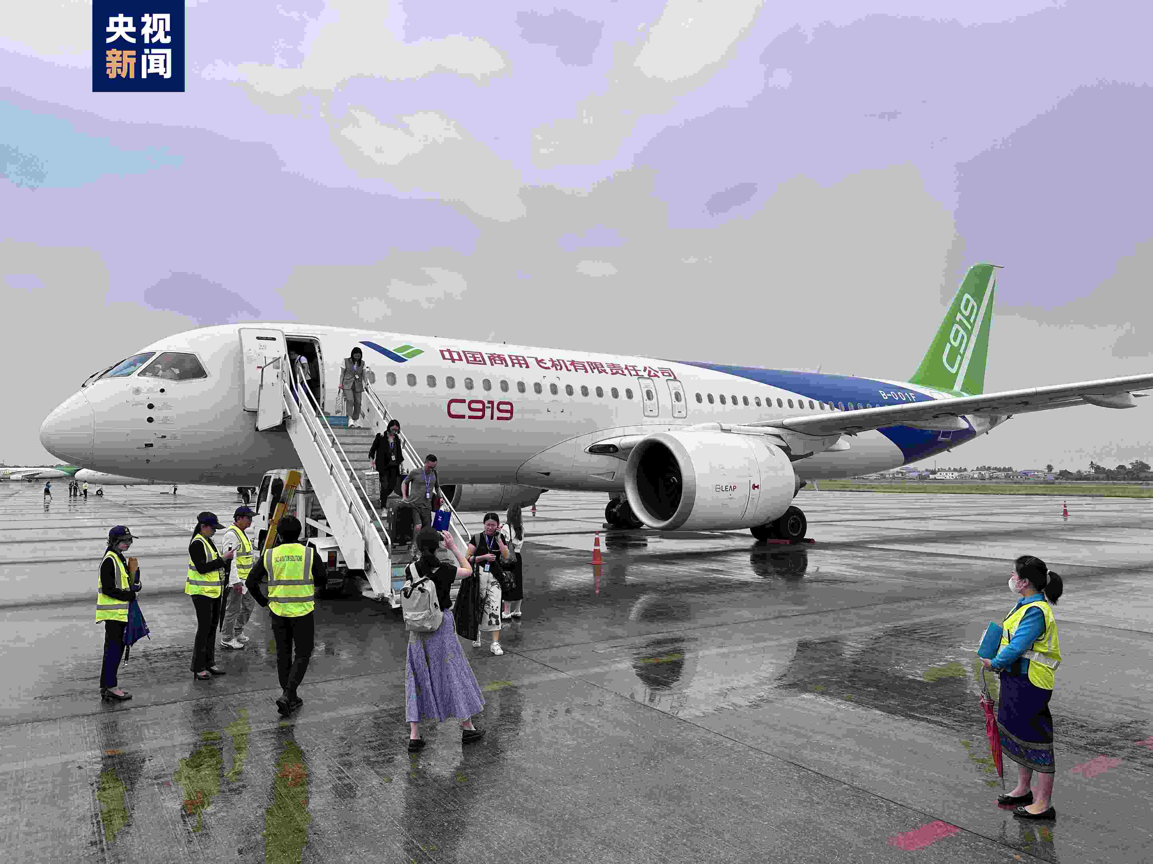 當(dāng)?shù)貢r(shí)間3月3日,中國生產(chǎn)的大型客機(jī)C919和支線飛機(jī)ARJ21從越南飛抵老撾,在位于老撾首都萬象的瓦岱國際機(jī)場降落。這是兩款機(jī)型首次來到老撾進(jìn)行展示。