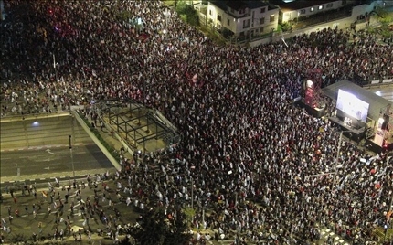當(dāng)?shù)貢r間6日,以色列特拉維夫爆發(fā)抗議活動,呼吁現(xiàn)任政府下臺且盡快采取措施帶回人質(zhì) 圖源:《以色列時報》