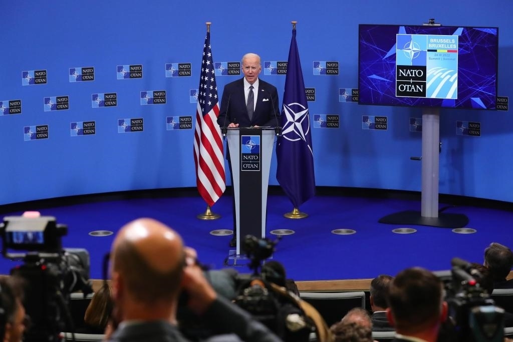 ?2022年3月24日,美國總統(tǒng)拜登在比利時(shí)布魯塞爾的北約總部出席北約特別峰會(huì)后的新聞發(fā)布會(huì)。新華社記者鄭煥松攝