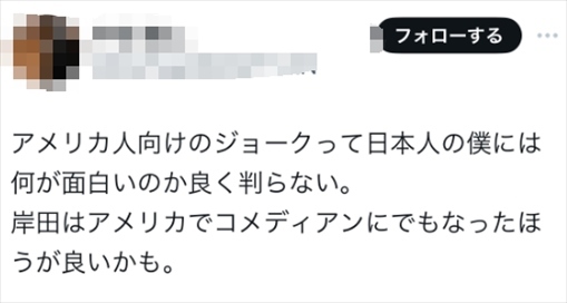 也有人說,“跟美國人講的這些笑話,作為日本人的我是真不知道好笑在哪里,可能岸田在美國當(dāng)個搞笑藝人比較好?!?/p>